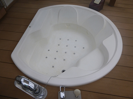 レジャーホテルの露天のブロアーバス日光でかなり痛みが出ていました。ホワイトで塗装しました。