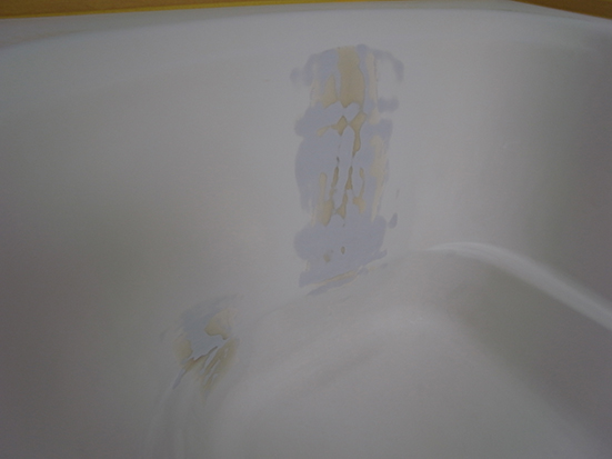FRP製浴槽背中に200mm程の割れがあり水漏れしていました。FRPで補強後塗装しました。