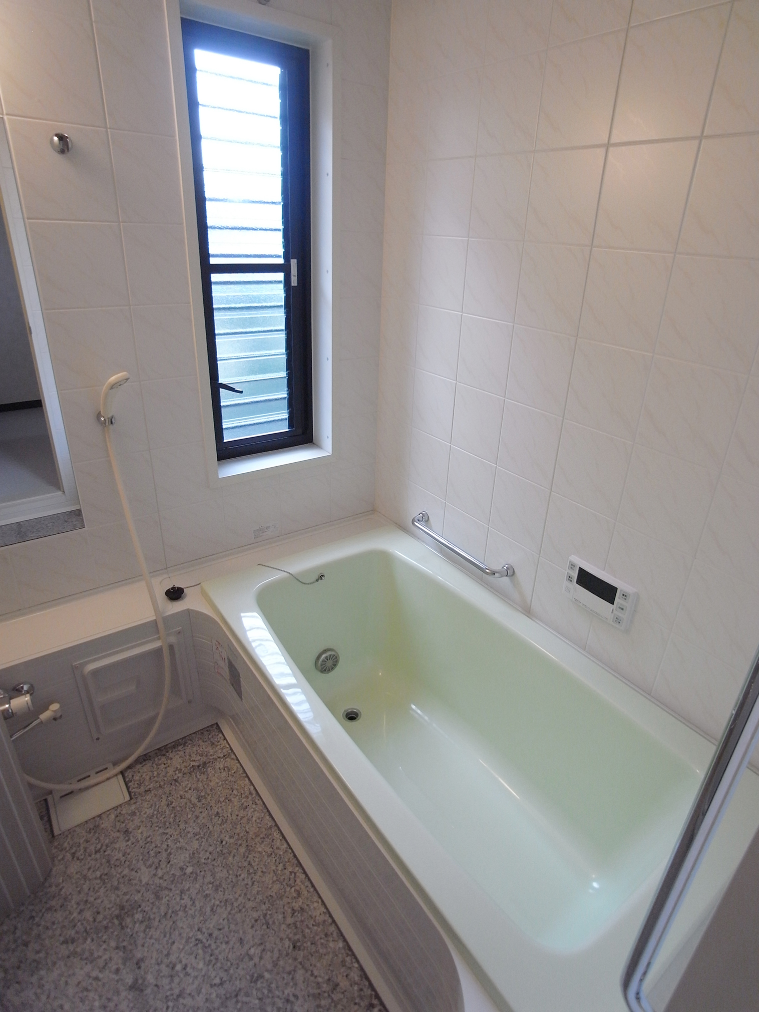 日ポリ加工製ユニットの浴槽のみ塗装ミントグリーンで塗装しました