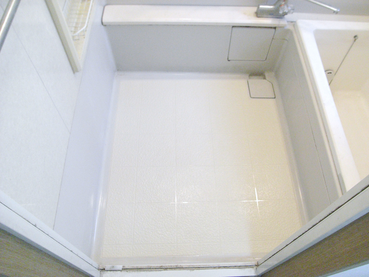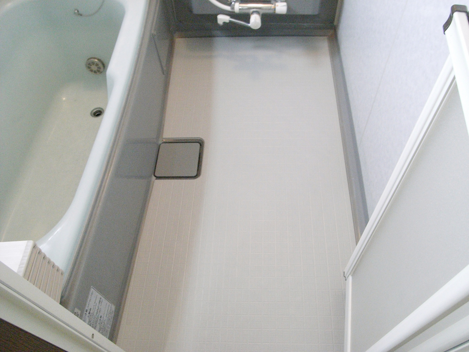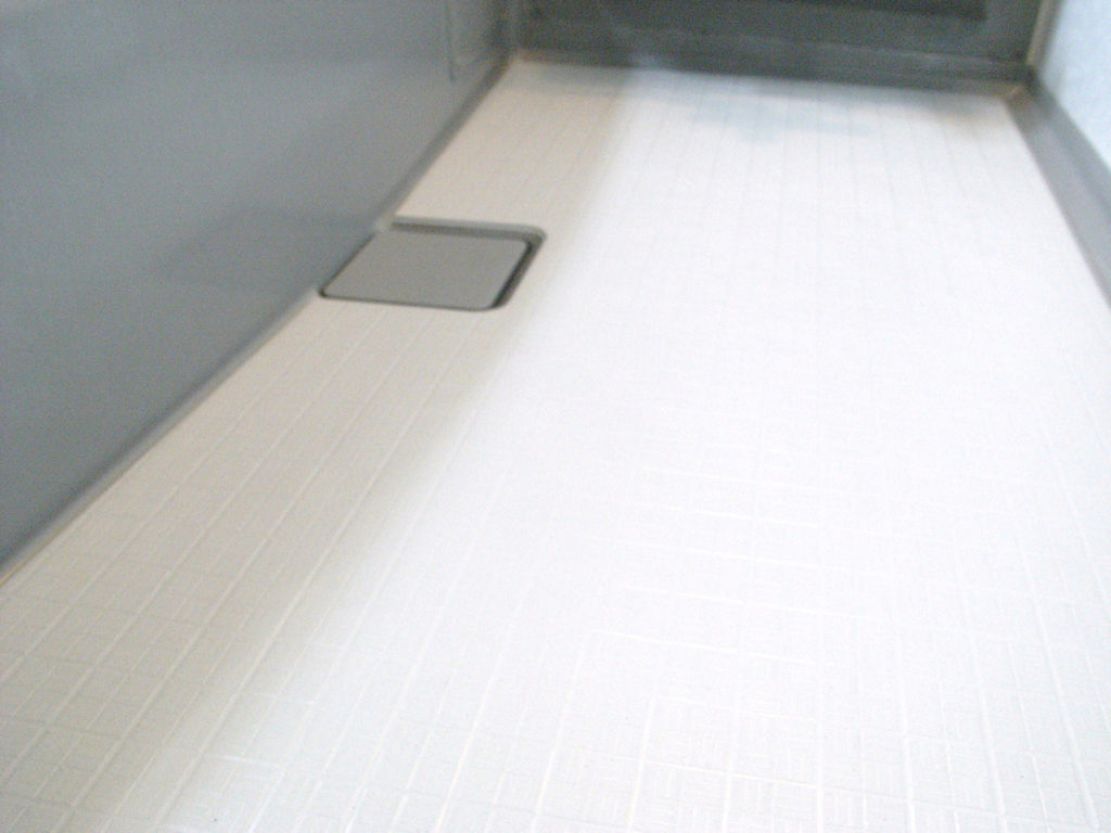 ユニットバス床タイル面へのバスナシート施工。