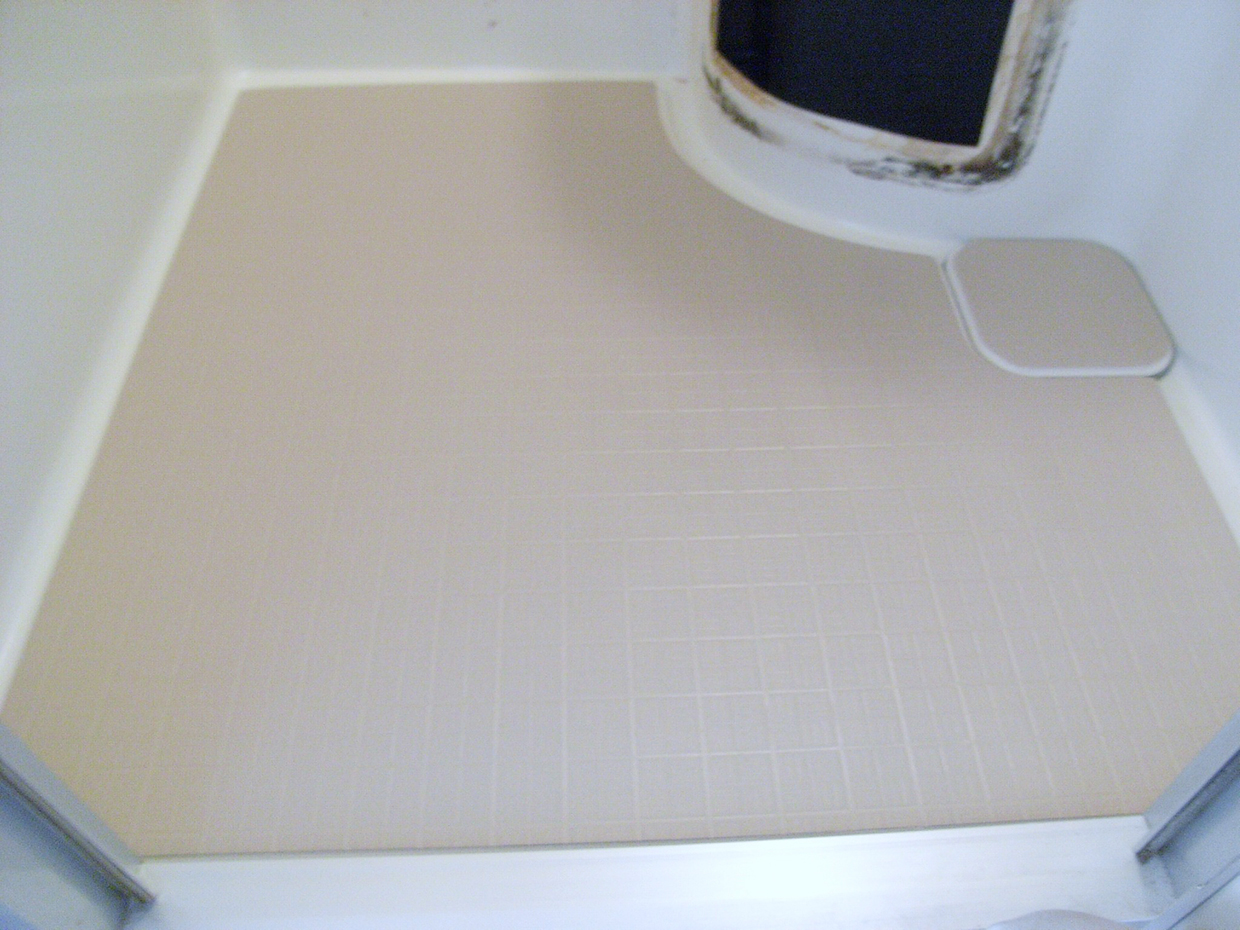 3点ユニットトイレ撤去後の穴埋めシート貼りバスナベージュ