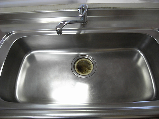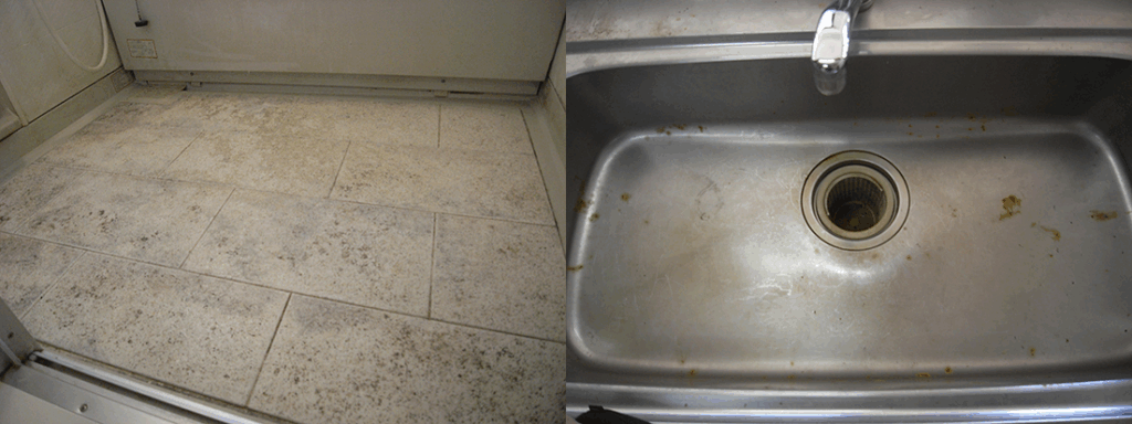 パナソニック電工製ユニット。床面が劣化でかびていました。ステンのシンクもポリッシング